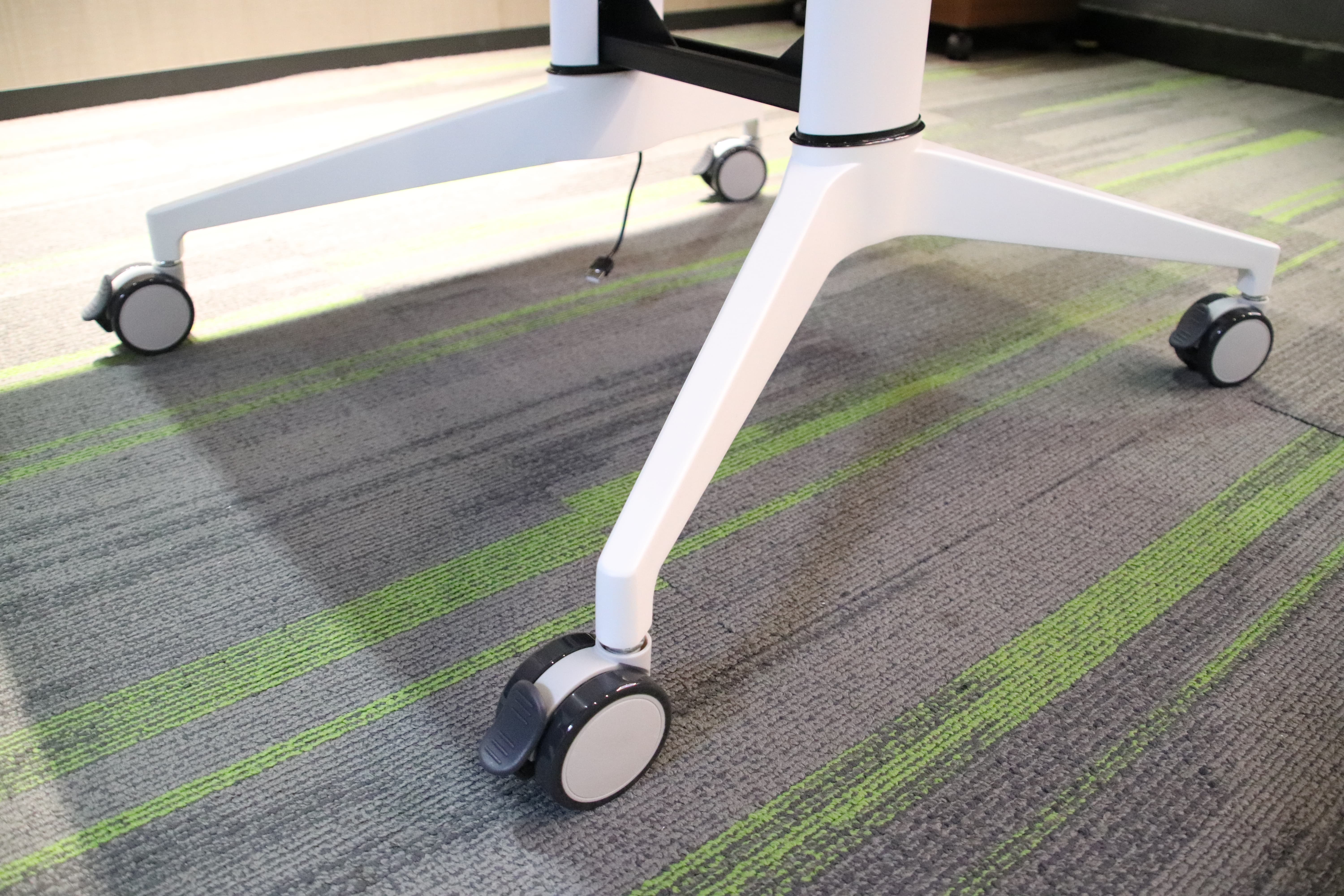 臺(tái)架:1、橫梁:厚度為2.0MM的冷軋鋼板;其和桌面精準(zhǔn)貼合,無需任何外物輔助,即可承重500斤以上的物品。2、立柱:厚度為2.0-3.0MM的擠壓型鋁材。3、底腳:厚度為3.0-4.0MM的壓鑄鋁材;跨度達(dá)650MM,以實(shí)現(xiàn)桌面更寬、更大,桌子更平穩(wěn)、更安全。4、腳輪:采用中國(guó)-西班牙合作最好的著名腳輪名牌“諾貝”,質(zhì)量保障,移動(dòng)順暢,帶剎車功能。隱藏式走線設(shè)計(jì):支持從桌架立柱走線,使辦公環(huán)境更整潔。