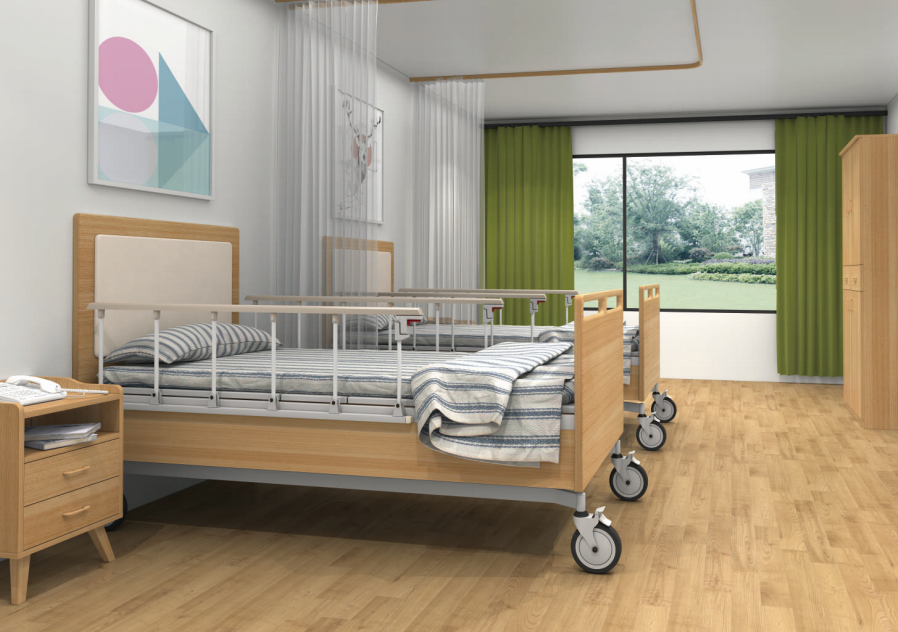 護(hù)理床:醫(yī)療機(jī)構(gòu)與養(yǎng)老院常配備的護(hù)理床,這種床具通常可調(diào)節(jié)高度和傾斜角度,方便護(hù)理人員對(duì)老人的照護(hù),并能幫助老人更好地進(jìn)出床鋪。